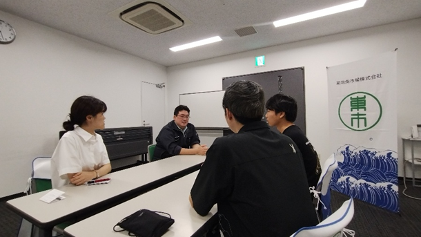 東市で営業担当として働かれている北大水産学部OBの方に、お仕事や学生時代についてお話を聞きました。特に漁獲量や価格の変動が激しい水産物を扱う上で、お客様や荷主様との関係や、情報を素早く正確に伝えることを大切にしているというお話が印象に残りました。OBの方が実際に社会で活躍なさっている姿を見て、今まで想像もしたことがなかった「社会に出て働く」ということに対する具体的なイメージが湧きました。